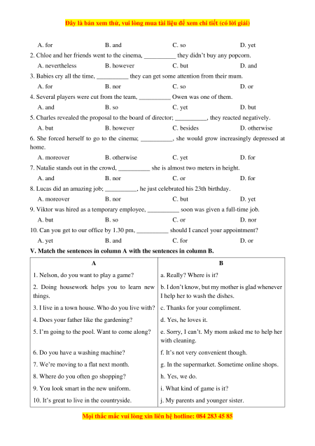 2. Chloe and her friends went to the cinema, __________ they didn’t buy any popcorn. A. nevertheless B. however C. but D. and