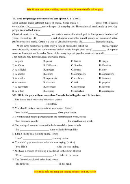Most cultures make different types of music. Some music (1)__________ along with religious