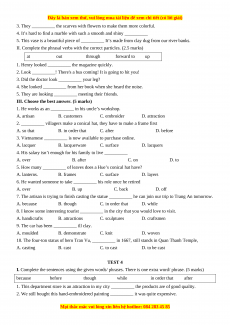 II. Find the word which has a different sound in the underlined part in each line. (2.5 marks) 1. A. layer B. frame C. place D. artisan 2. A. although B. through C. authentic D. authority 3. A. sculpture B. drum C. museum D. cultural 4. A. shocked B. looked C. watched D. raised 5. A. picked B. delivered C. promised D. clicked