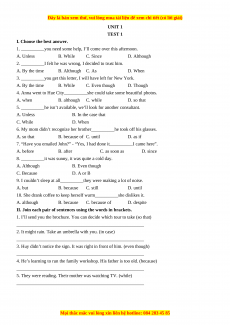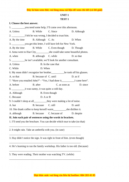 1. __________you need some help, I’ll come over this afternoon. A. Unless B. While C. Since D. Although