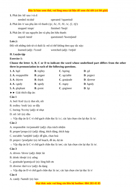 b. Quy tắc phát âm đuôi -ed của động từ quá khứ:
