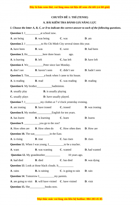 CHUYÊN ĐỀ 1: THÌ (TENSE)