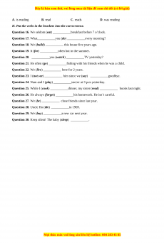“Tim đang đọc sách khi tôi đến nhà cậu ấy.” Đáp án C Question 6