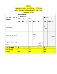 MA TRẬN ĐỀ KIỂM TRA CUỐI KÌ I – NĂM HỌC