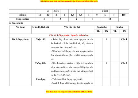 đ) điểm) điểm) Điểm số 1,5 2,5 2 1 1,5 0,5 1 0 6 4 100 Tổng số điểm 4 3 2 1 10 2. Bảng đặc tả Nội dung