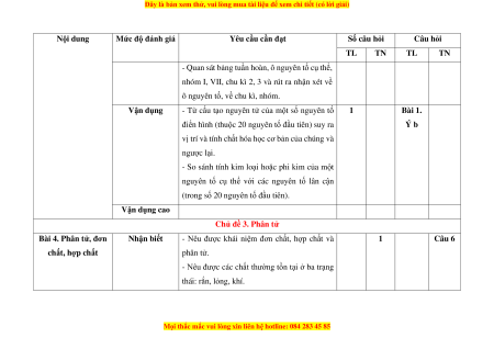 - Phát biểu được khái niệm về nguyên tố hóa 1 Câu 3 hóa học