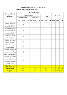MA TRẬN ĐỀ KIỂM TRA CUỐI HỌC KÌ 1