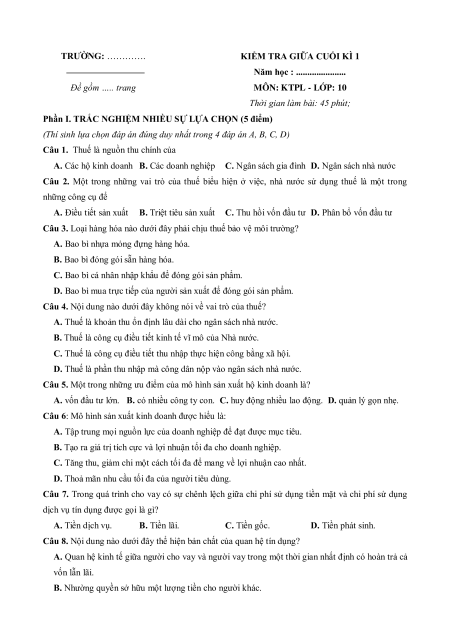 Đề gồm ….. trang MÔN: KTPL - LỚP: 10