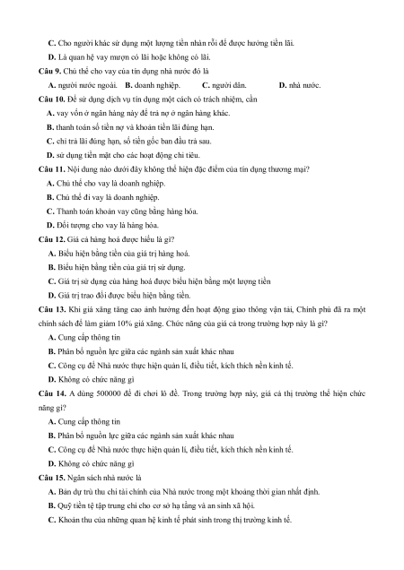 Câu 8. Nội dung nào dưới đây thể hiện bản chất của quan hệ tín dụng?