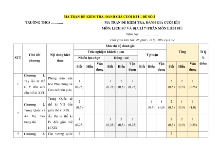 Thời gian làm bài: 45 phút - Tỉ lệ: 50% Lịch sử