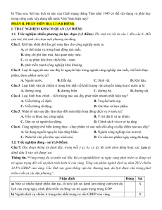 PHẦN A. PHÂN MÔN LỊCH SỬ (5,0 ĐIỂM)
