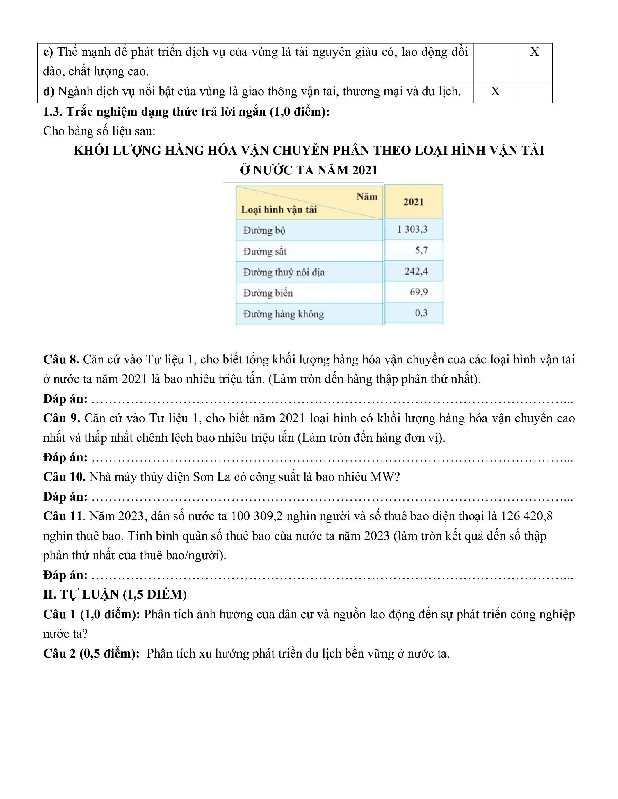 Bộ đề thi Cuối kì 1 Lịch sử&Địa Lý 9 Cánh diều Cấu trúc mới
