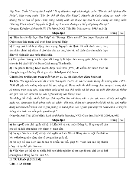 (Evgeny Kobelev, Đồng chí Hồ Chí Minh, NXB Tiến Bộ, Mát-xcơ-va, 1985, tr.142) Nhận định Đúng Sai