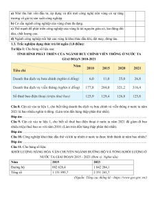 Câu 8. Căn cứ vào tư liệu 1, cho biết tổng doanh thu dịch vụ bưu chính và viễn thông ở nước ta năm