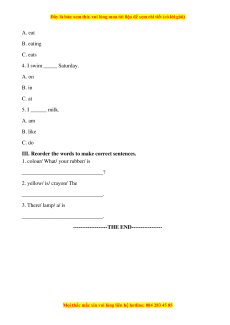 Bộ đề thi cuối kì 1 Tiếng Anh lớp 2 Phonic Smart có đáp án