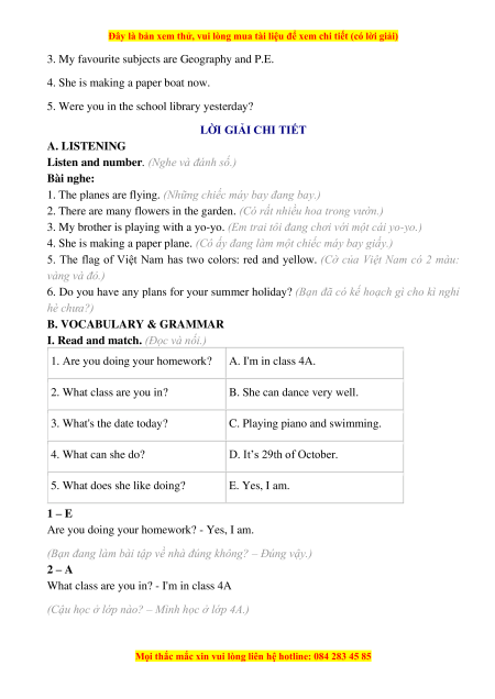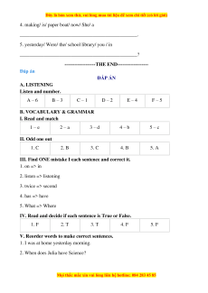 -------------------THE END------------------- Đáp án ĐÁP ÁN A. LISTENING Listen and number. A – 6 B – 3 C – 1 D – 2 E – 4 F – 5