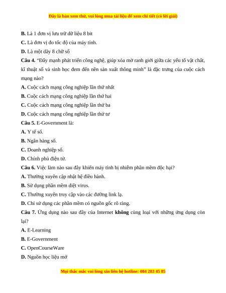 Câu 5. E-Government là: A. Y tế số. B. Ngân hàng số. C. Doanh nghiệp số.