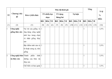 + 40% điểm cho câu hỏi trắc nghiệm đúng sai. Mức độ đánh giá Tổng Tỉ lệ Chương/ chủ TT Đơn vi kiên thức TN nhiều lựa TN dạng Tự luận % đề chọn Đúng/Sai điểm