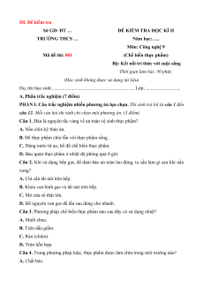 ĐỀ KIỂM TRA HỌC KÌ II TRƯỜNG THCS … Năm học:…. Môn: Công nghệ 9 Mã đề thi: 001