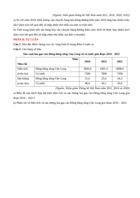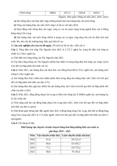 Câu 3. Năm 2021, đồng bằng sông Cửu Long có diện tích trồng lúa là 3898,6 nghìn ha, sản lượng lúa là 24,3 triệu tấn.