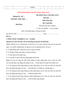 TRƯỜNG TIỂU HỌC … Môn: Khoa học Bộ: Cánh diều Mã đề thi: