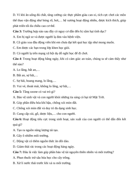 (7 câu trắc nghiệm – 3 câu tự luận)