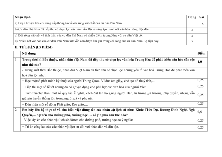 Mỗi đáp án đúng được 0,25 điểm Câu 7: Nhận định Đúng Sai