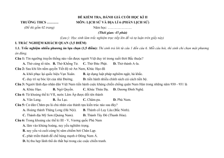 Thời gian làm bài: 45 phút - Tỉ lệ: 50% Lịch sử