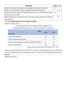 sinh đọc tư liệu và chọn đúng hoặc sai ở mỗi ý a), b), c), d). Lưu ý: đánh dấu X vào cột đúng/ sai.
