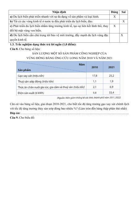 ngày càng đa dạng như: du lịch sinh thái biển, đảo; thể thao biển;. .” Nhận định Đúng Sai