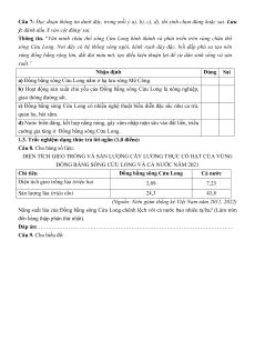 Câu 7: Đọc đoạn thông tin dưới đây, trong mỗi ý a), b), c), d), thí sinh chọn đúng hoặc sai. Lưu