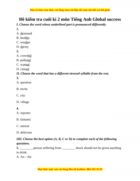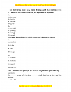 Đề kiểm tra cuối kì 2 môn Tiếng Anh Global success