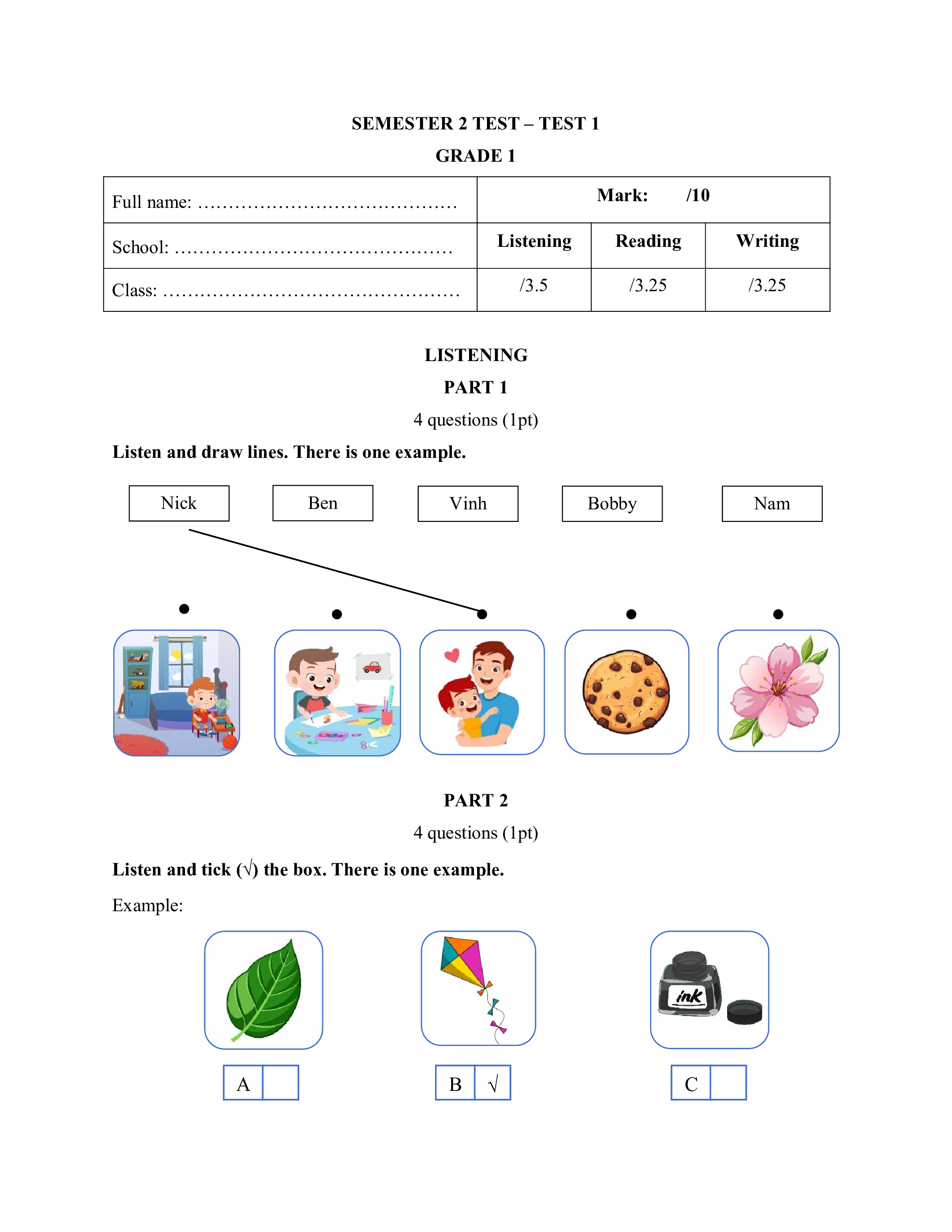 Bộ đề thi cuối kì 2 Tiếng Anh lớp 1 iLearn Smart Start có đáp án
