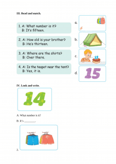 B: No, it isn’t. It’s in the tent. (Không phải. Nó ở trong lều.) III. Read and match. (Đọc và nối.) 1 – d