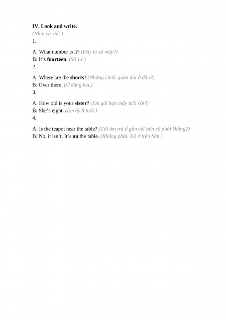 IV. Look and write.