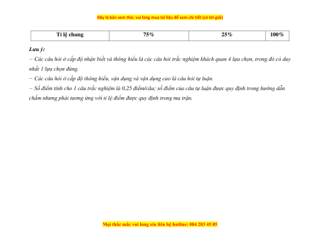 − Số điểm tính cho 1 câu trắc nghiệm là 0,25 điểm/câu; số điểm của câu tự luận được quy định trong hướng dẫn