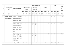 Định hướng Nghề nghiệp 4 3 4 3 17,5% nghề nghiệp trong lĩnh vực kĩ thuật, công nghệ Giáo dục kĩ 4 3 1a; 2a; I 6 5 1 37,5% thuật, công nghệ 1b 2b trong hệ thống giáo dục quốc dân Thị trường lao 4 2 2a; 2c; II 6 4 1 45% động kĩ thuật, 2b 2d công nghệ tại Việt Nam Tổng số câu 12 8 2 2 16 12 2 Tổng số điểm 5 2 3 100% Tỉ lệ % 50% 20% 30 % 100% 2. Bản mô tả