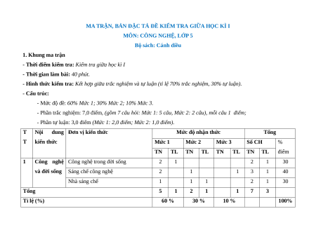 năng cần kiểm tra, đánh thức giá Mức 1 Mức 2 Mức 3 TN TL TN TL TN TL 1 Công Công Mức 1: 2 1 nghệ và nghệ