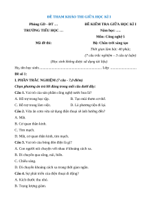 TRƯỜNG TIỂU HỌC … Năm học: …. Môn: Công nghệ 5 Mã đề thi: