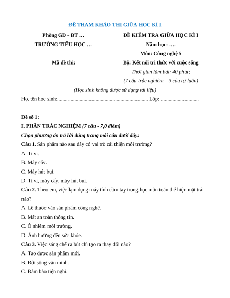 - Tailieugiaovien.com.vn giới thiệu bộ 2 đề giữa kì 1 gồm đầy đủ ma trận và lời giải chi tiết môn Công nghệ lớp 5 Kết nối tri thức mới nhất năm 2025 nhằm giúp Giáo viên có thêm tài liệu tham khảo ra đề thi Công nghệ lớp 5.