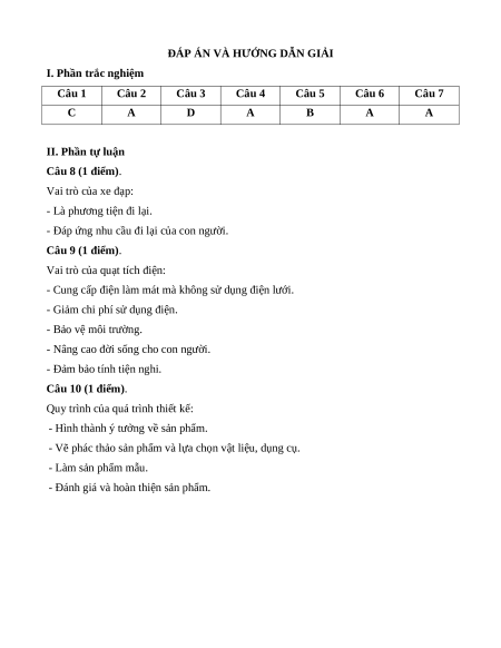 Câu 7. Thiết kế thuộc bước thứ mấy trong hoạt động tạo ra sản phẩm công nghệ? A. 1. B. 2. C. 3. D. 4.