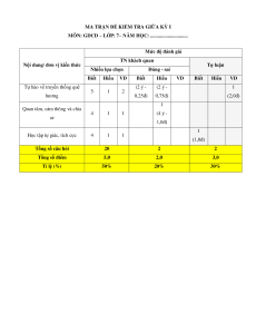 MA TRẬN ĐỀ KIỂM TRA GIỮA KỲ I