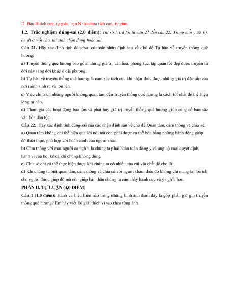 Tự hào về truyền thống quê (2 ý - (2 ý - 1 5 1 2 hương 0,25đ) 0,75đ) (2,0đ) 1
