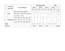 năng cần kiểm tra, kiến thức Mức 1 Mức 2 Mức 3 đánh giá thức TN TL TN TL TN TL Mức 1: - Nêu được thành phần, vai trò của đất