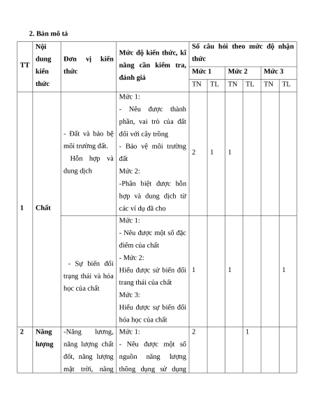 + Phần tự luận: 3,0 điểm (Mức 1: 2,0 điểm; Mức 2: 1,0 điểm).
