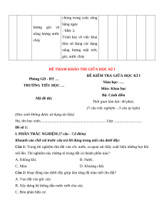 TRƯỜNG TIỂU HỌC … Môn: Khoa học Bộ: Cánh diều Mã đề thi: