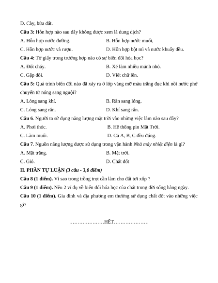 (7 câu trắc nghiệm – 3 câu tự luận)