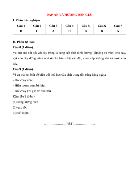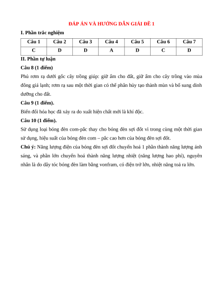 + Phần trắc nghiệm: 7,0 điểm, (gồm 7 câu hỏi: Mức 1: 5 câu, Mức 2: 2 câu), mỗi câu 1 điểm;