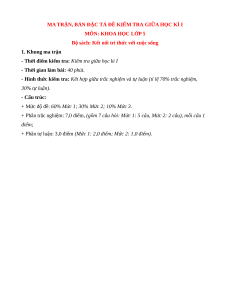 MA TRẬN, BẢN ĐẶC TẢ ĐỀ KIỂM TRA GIỮA HỌC KÌ I