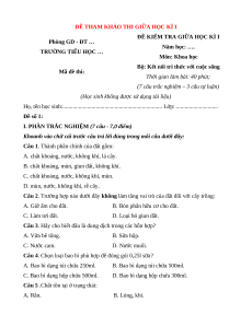 Bộ đề thi giữa kì 1 Khoa học lớp 5 Kết nối tri thức có đáp án
